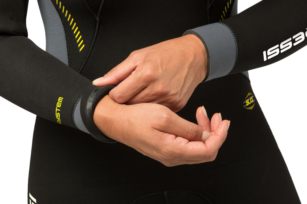 Cressi's water-stop system wrist and ankle cuffs feature an inner ‘ring’ seal that creates a second barrier, keeping water out and warmth in. The high-quality YKK back zip features a wide GlideSkin panel underneath, creating an extra seal that minimises water entry and improves thermal protection around the back.