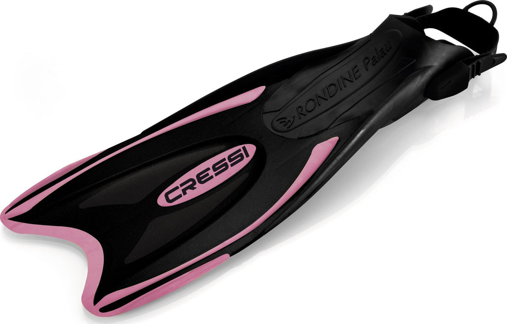 Palau opens the door to a new type of snorkeling and swimming fin. In fact, it was designed with two specific requirements in mind. The first was to create a footpocket that could easily adapt to at least three or four adjacent sizes, so that members of a family or a group of friends could share the same fin, or that it could be easily rented in a dive store or charter boat without requiring an endless number of sizes. The second requirement was to ensure elevated comfort and make it easy to put on, while still being an open-heel fin to be worn barefoot. The result is a fin that's incredibly practical, that adapts to every foot, and that can be fitted very quickly in any situation. The blade is made with a lightweight material that is nevertheless quite responsive, ensuring a fluid and non-tiring finning action that is also fairly powerful. The strap features a sturdy ring on the top so that it can be folded over on itself, and also so the fin can be hooked to the body or to equipment